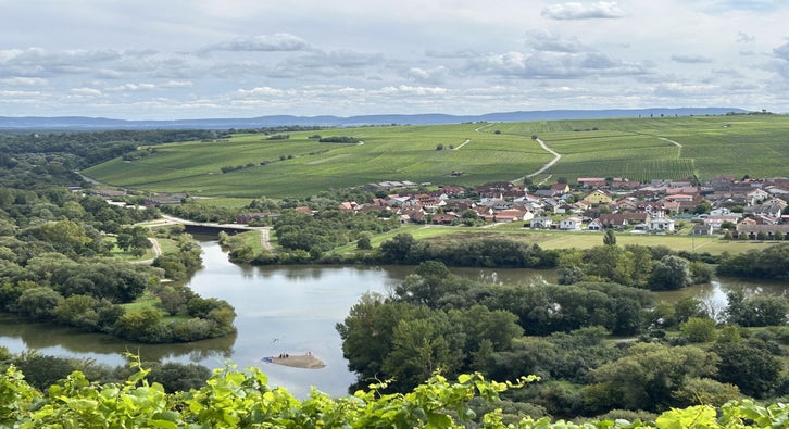 Am Sonntag haben wir dann im Womo gefrühstückt. Es war bewölkt und windig, aber trocken, so dass wir nachdem Frühstück mit den Rädern erstmal Richtung Volkach losgezogen sind. Von dort aus sind wir dann weiter Richtung Fahr und haben in Obereisenheim mit einer kleinen Fähre auf die andere Seite des Mains gewechselt.